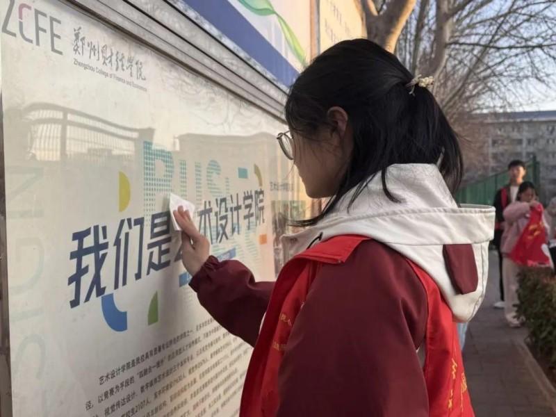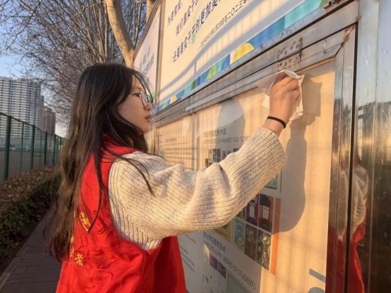 雷锋精神放光芒,志愿服务践初心。3月18日,6686体育青年志愿者协会组织开展了“文明摆放单车,清洁校园展板”志愿服务活动。活动中,志愿者们按照计划迅速行事,在单车整理区域,志愿者们分工协作,将散乱停放的共享单车整齐摆放到指定区域,并细心地将安全帽挂置在车把手上,确保车辆整洁有序。在展板清洁区域,志愿者们手持抹布,认真擦拭每一块展板,细致清理边角缝隙,让展板重现光彩。通过亲身参与志愿服务,志愿者们深刻体会到劳动的价值与快乐,更加坚定了传承雷锋精神的信念。此次活动不仅美化了校园环境,更展现了新时代青年志愿者的责任与担当。让雷锋精神在校园蔚然成风,让志愿服务之花在校园绚丽绽放。