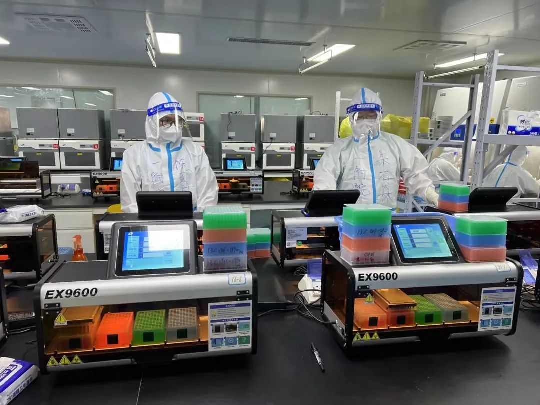 自治区核酸检测中心(新疆医科大学PCR生物实验室)专家团队在奔赴库尔勒市当天,就立即投入工作,快速完成核酸检测实验室的改造及设备安装调试和实验性能验证,第二天进入试运行,第三天便正式运行,核酸检测实验室每天最高可以承担5万余管的检测任务。