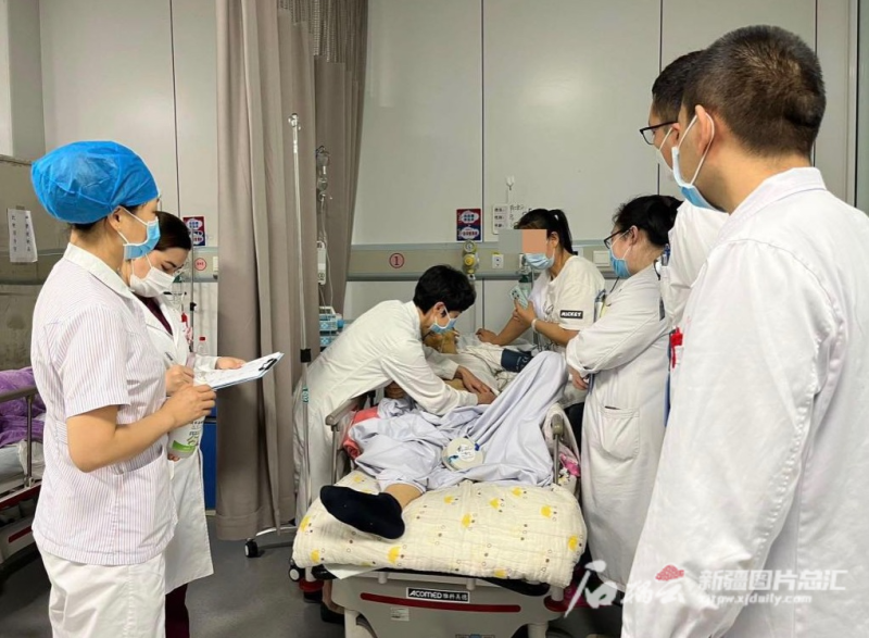 11月28日11时许,新疆医科大学附属肿瘤医院(自治区肿瘤医院)急诊科,医生孙雯剑挽起患者的裤腿,看到小腿和脚背皮肤上的紫色淤点,他的表情凝重起来。通过初步检查和详细询问病史,他立即安排患者做进一步检查和治疗,并快速对接联系,做好紧急输血的准备。