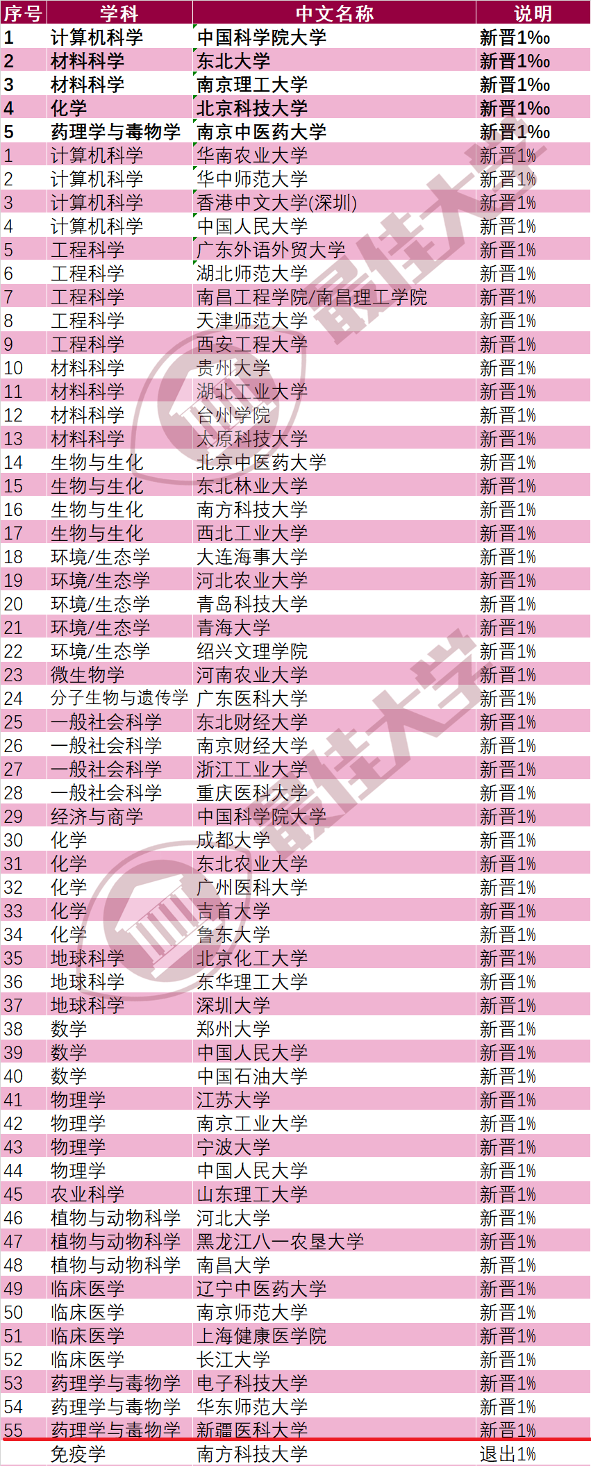 据最佳大学的消息,内地高校共54个学科新晋升全球前1%。