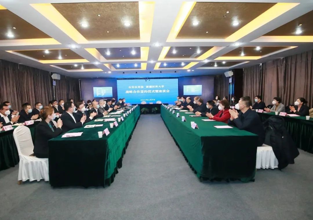 2月9日下午,新疆医科大学与自治区科学技术协会签署了战略合作协议,双方将围绕推动区域高水平医学科技发展,推进“一带一路”区域医疗服务中心建设,助力新疆医疗卫生事业高质量发展等方面开展科技领域的深层次合作。