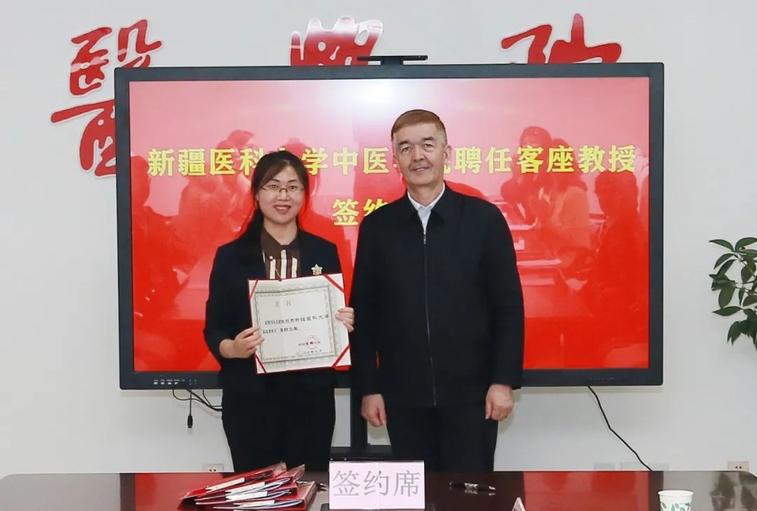 3月31日下午,新疆医科大学中医药楼里气氛热烈,校党委副书记、校长阿吉艾克拜尔·艾萨为北京中医药大学的费宇彤教授和北京大学的孙凤副教授颁发了我校客座教授聘书。
