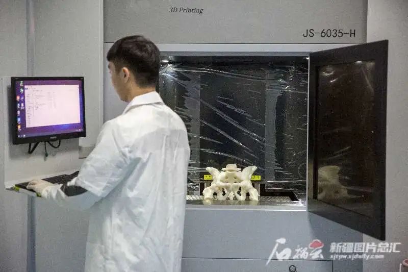 3月25日,新疆医科大学数字骨科中心,工作人员在打印患者骨盆。彭理斌 摄