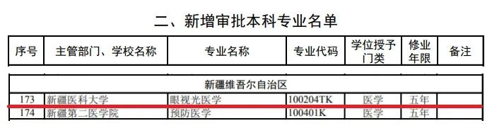 近日,教育部公布2022年度普通高等学校本科专业备案和审批结果,新疆医科大学申报的眼视光医学专业成功获批新增审批本科专业。