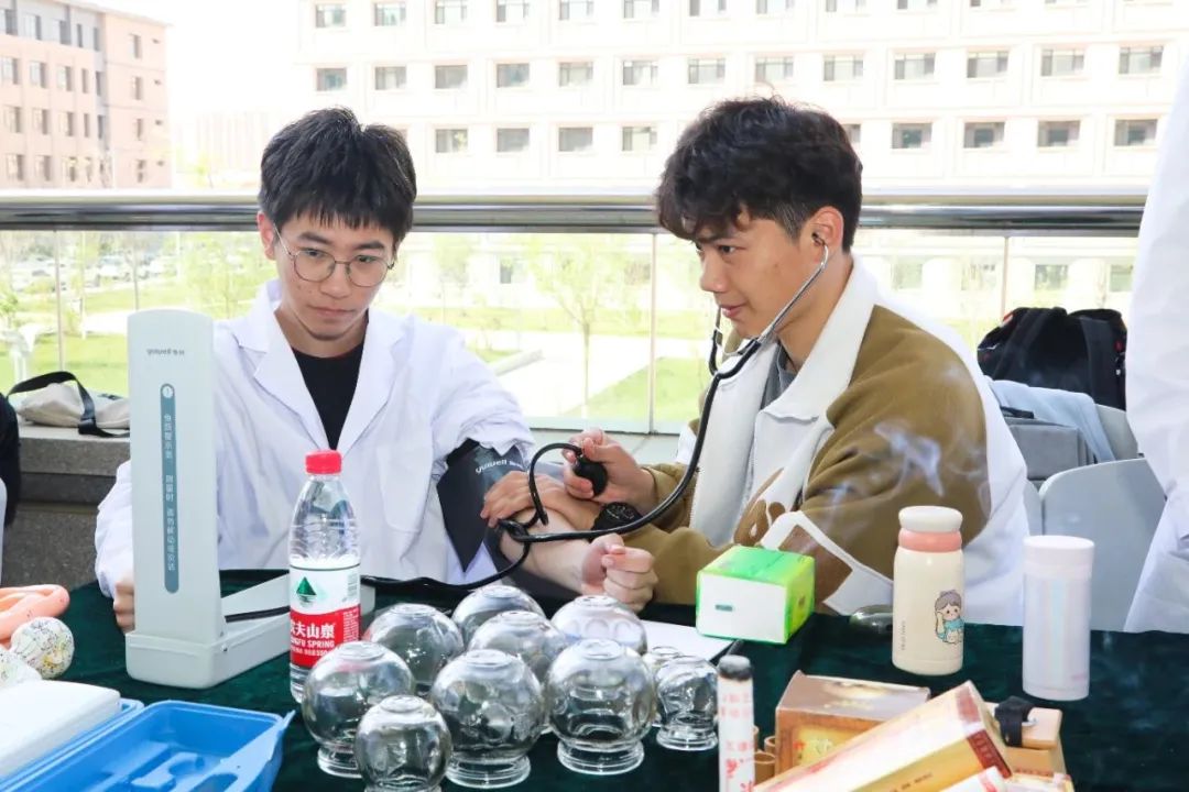 本届中医药文化月的主题是“高举旗帜、建功新时代,传承创新、发展中医药”。活动现场设置了中药香囊制作、针灸推拿体验、国术社八段锦和武术、经典诵读、茶道、书法表演和中医药品展示等七大展区,让新医师生们能够零距离体验和感受传统中医药文化。