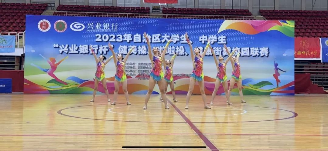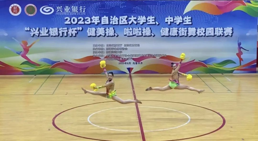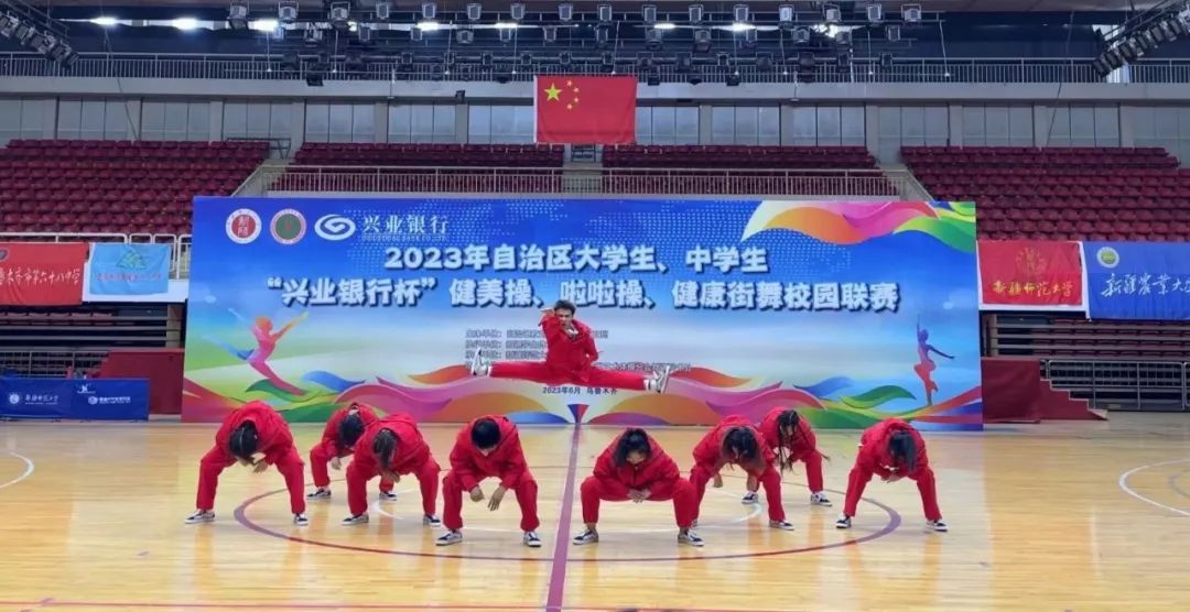 6月3日,在2023年自治区大学生健美操、啦啦操、健康街舞校园联赛中,我校大学生啦啦操队、街舞队创出佳绩,在大学甲组爵士啦啦操、双人花球、健康街舞三个项目的角逐中,共获得3枚金牌,取得参赛项目全部夺冠的优异成绩。我校代表队还荣获此次赛事大学甲组“体育道德风尚奖”。