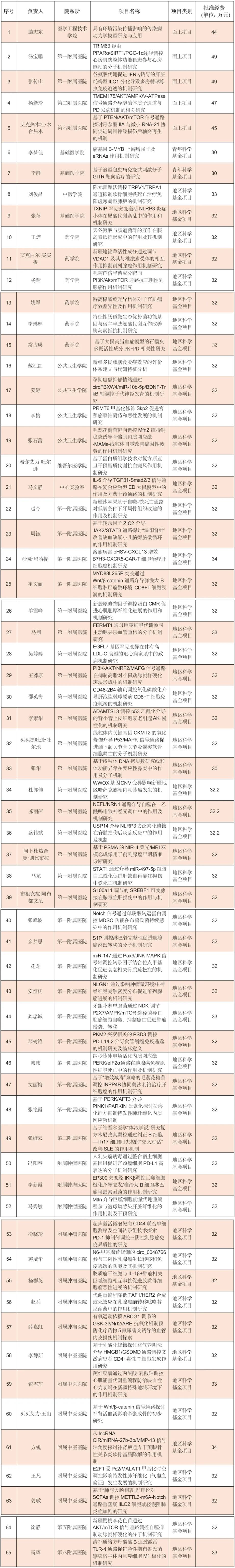 近日,国家自然科学基金委员会公布了2023年度国家自然科学基金项目评审结果,新疆医科大学共获得国家自然科学基金项目65项,资助直接经费2157.6万元。其中,面上项目5项,青年科学基金项目2项,地区科学基金项目58项。