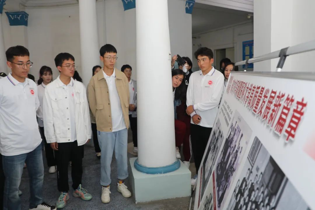 在新医路校区苏园里,一幅幅记录学校发展变迁的老照片,一个个反映新医发展历程的历史瞬间,深深地吸引了同学们的目光。大家纷纷拿出手机拍照,一边看一边听着讲解员声情并茂的介绍。“1954年,新疆医学院破土动工,历经700多个日夜挥洒汗水,1956年7月,新疆医学院建成!”全科医学院推免生辅导员张梓月正在为新生们讲解着新医的诞生过程。