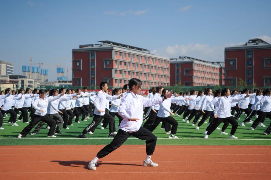 9月27日下午,新疆医科大学首届中华传统体育“武术”节暨“太极拳”校园比赛在田径场举行,全校16个学院近千名新医学子现场表演了集体“太极拳”。