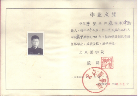 1959年,在党的号召下,陈坚和北京医学院(现北京大学医学部)医疗系、儿科系、口腔系、卫生系和药学系的应届毕业生30人来到新疆。经过几天艰苦的长途跋涉,这批怀揣报国理想的年轻人终于踏上了新疆这片热土,开启了建设边疆的火热生活。