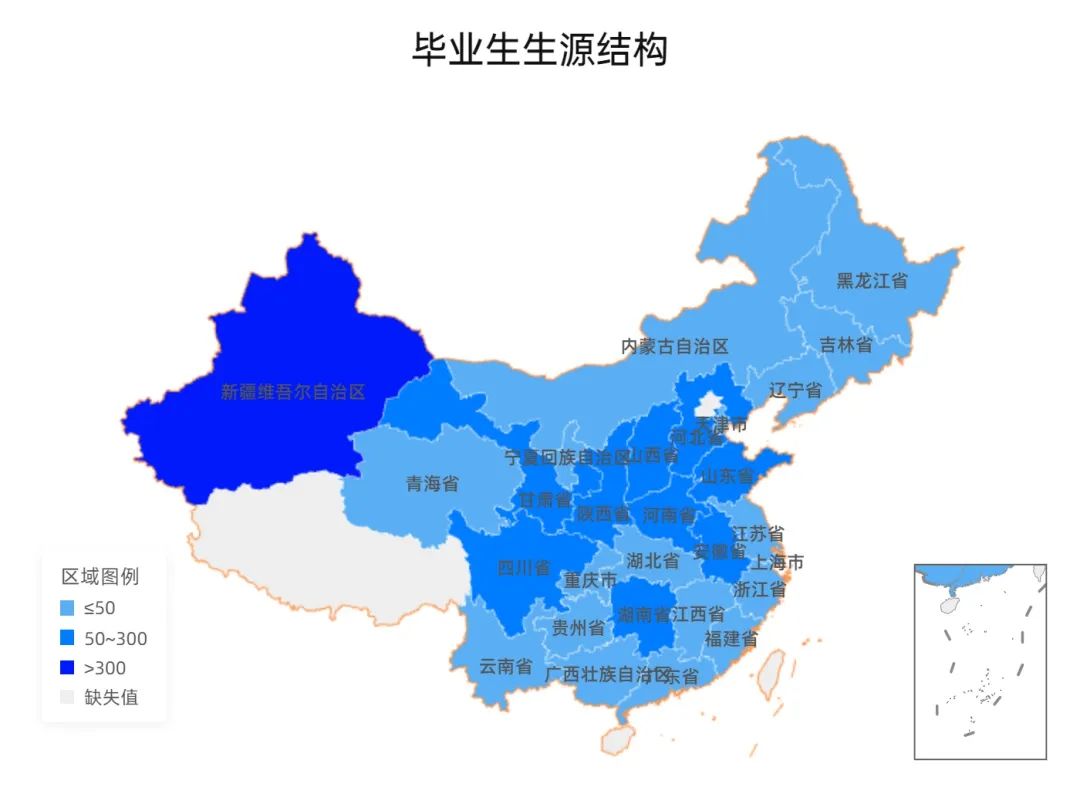 2024届毕业生来自全国各地,天山南北,以疆内生源为主,其次是河南、山东、四川、甘肃、陕西、重庆等省份毕业生较多。