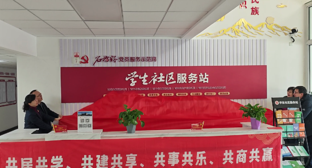近日,临床医学部“一站式”学生社区服务站举行党员服务示范岗启动仪式,校党委副书记李剑峰为“石榴籽党员服务示范岗”揭牌。