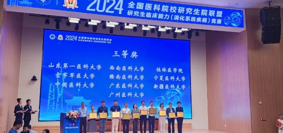 4月10日,全国医科院校研究生院联盟2024年度研究生临床能力(消化系统疾病)竞赛在南方医科大学举行。我校研究生代表队经过两轮初赛和三轮复赛的比拼,最终荣获三等奖。
