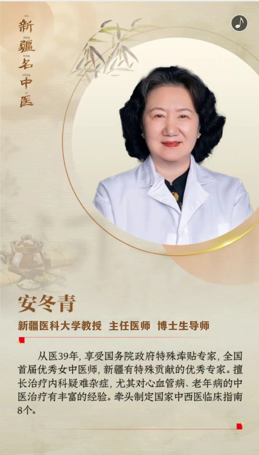 在前不久召开的自治区中医药高质量发展大会上,26位获得第二届新疆名中医称号的专家受到表彰,新疆医科大学10位专家榜上有名!他们分别是:安冬青、曾斌芳、张星平、李风森、陆明、吕书勤、胡晓灵、王晓峰、辛效毅、霍迎春。