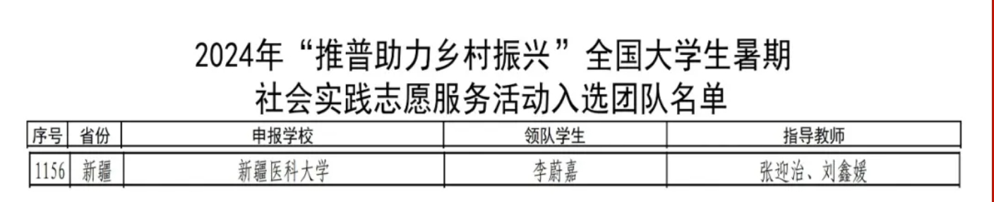 近日,我校“新医推普社”成功入围由教育部、共青团中央组织开展的2024年“推普助力乡村振兴”全国大学生暑期社会实践志愿服务活动。