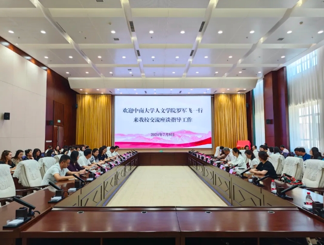 7月8日,中南大学人文学院党委书记罗军飞一行来到我校交流座谈,并举行国家语言文字推广基地(中南大学)新疆医科大学工作站揭牌仪式,副校长刘涛出席座谈会,校党委常委、宣传部部长林素兰主持会议。