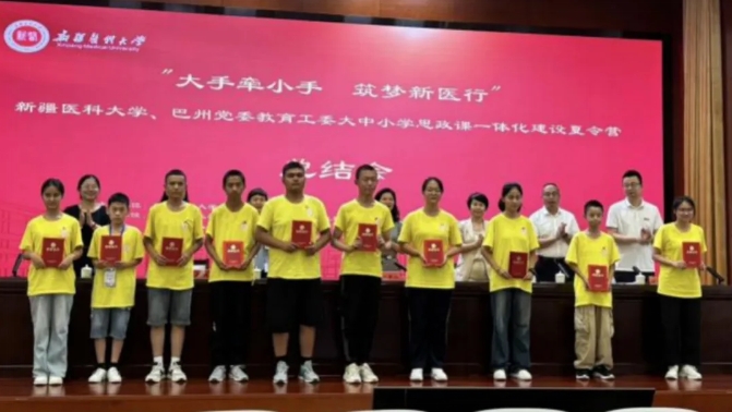 7月12日下午,由新疆医科大学和巴州党委教育工委联合举办的“大手牵小手 筑梦新医行”大中小学思政课一体化夏令营,在完成了五天内容丰富多彩的各项活动后圆满闭营。