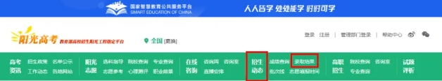 02进入“阳光高考网”,在招生动态栏点击“录取结果”。