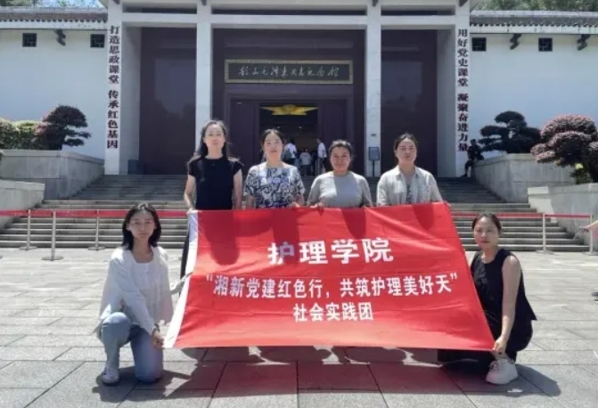 近日,我校护理学院“湘新党建红色行 共筑护理美好天”社会实践团,与中南大学湘雅护理学院共同开展党建交流和爱国主义教育活动。