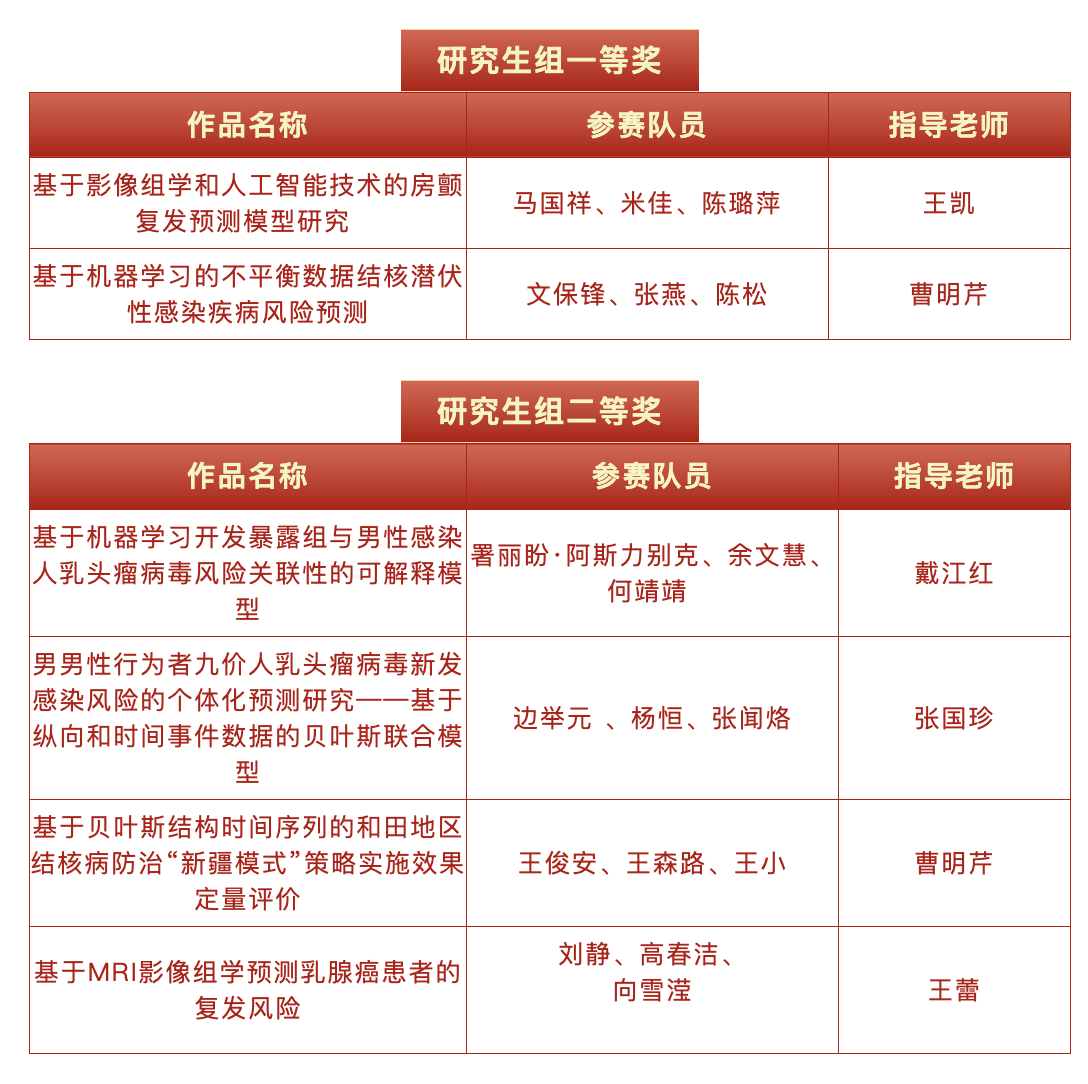 近日,第十届全国大学生统计建模大赛新疆赛区决赛结果公布,新疆医科大学16支队伍的参赛作品入围获奖。
