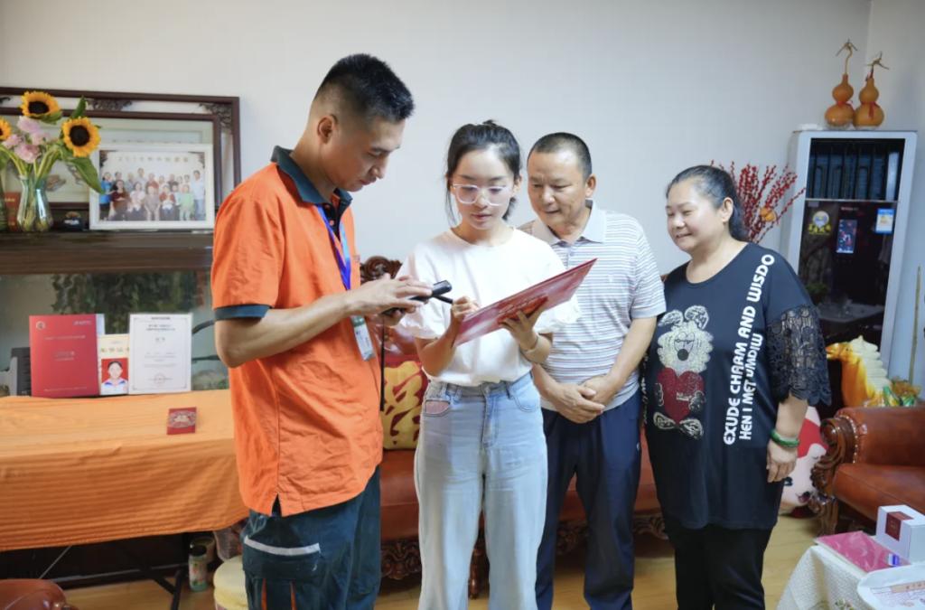 李同学和家人朋友们坐在一起,和录取通知书合影,记录下这一难忘的时刻。