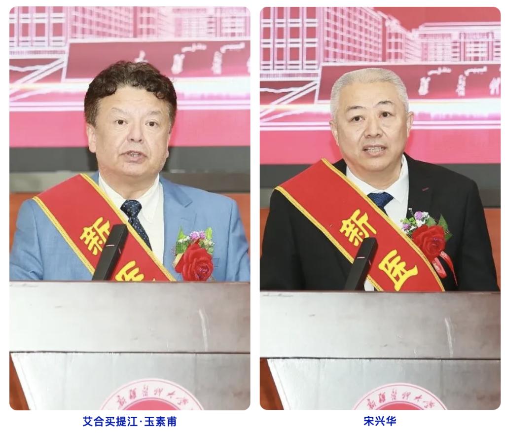 会议首先宣读了新疆医科大学《关于授予艾合买提江•玉素甫等7名同志“新医名医”称号的决定》。校领导向获得第二届“新医名医”荣誉称号的艾合买提江·玉素甫、张莉、董旭南、赵文、李晓梅、李莉、宋兴华7位医生授牌。