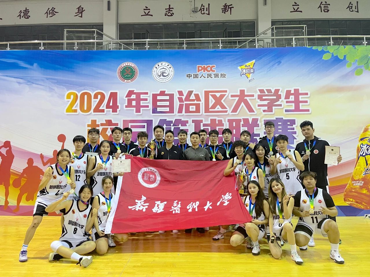 10月27日,2024年自治区大学生校园篮球联赛在新疆理工学院圆满落幕。新疆医科大学男、女篮球竞训代表队荣获本次赛事男子甲组亚军和女子甲组亚军的好成绩,创造了我校大学生男女篮球队历史最好成绩,我校女子篮球代表队还将代表自治区高校,参加2025年全国高校篮球总决赛。