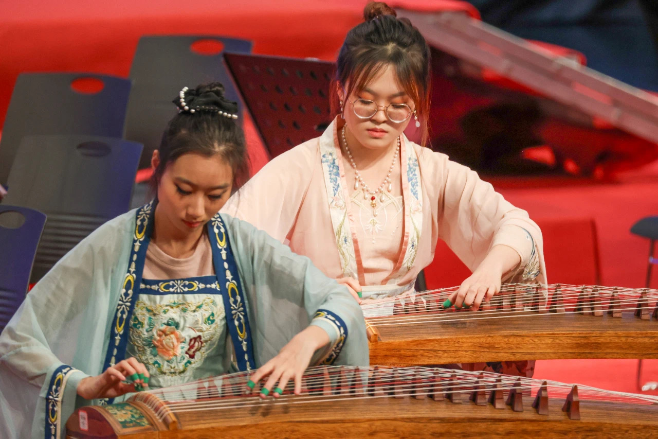 数千年的传统民乐文化孕育滋养了一代代中国人,当古典音乐流泻而出的一刹那,高山、流水、丝竹、冬雪的旋律和谐奏响,《喜洋洋》《大中国》的民乐合奏带领着观众跨越时空,传递出那份说不出、道不尽的感动,展示着中国古典器乐绕梁三日之美,一点点浸润了新医师生的心灵。
