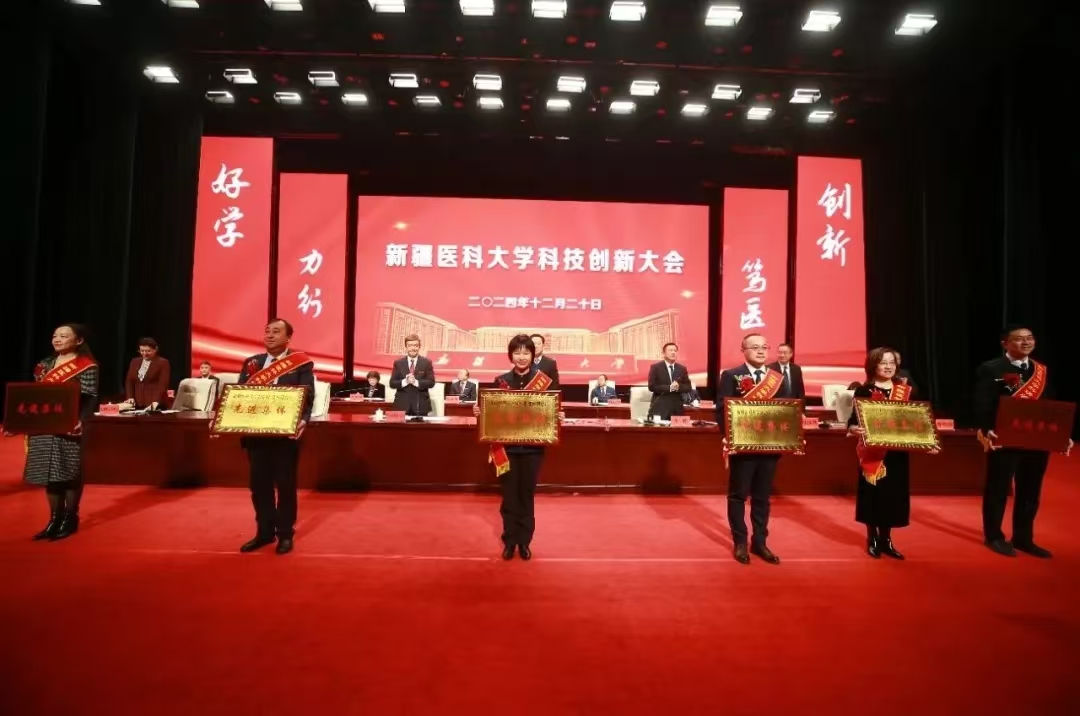 会上宣读了新疆医科大学关于表彰2023—2024年重大科研项目和成果的决定、新疆医科大学关于表彰2023年度科研管理先进集体和先进工作者的决定,并为获奖的个人及团队颁奖。