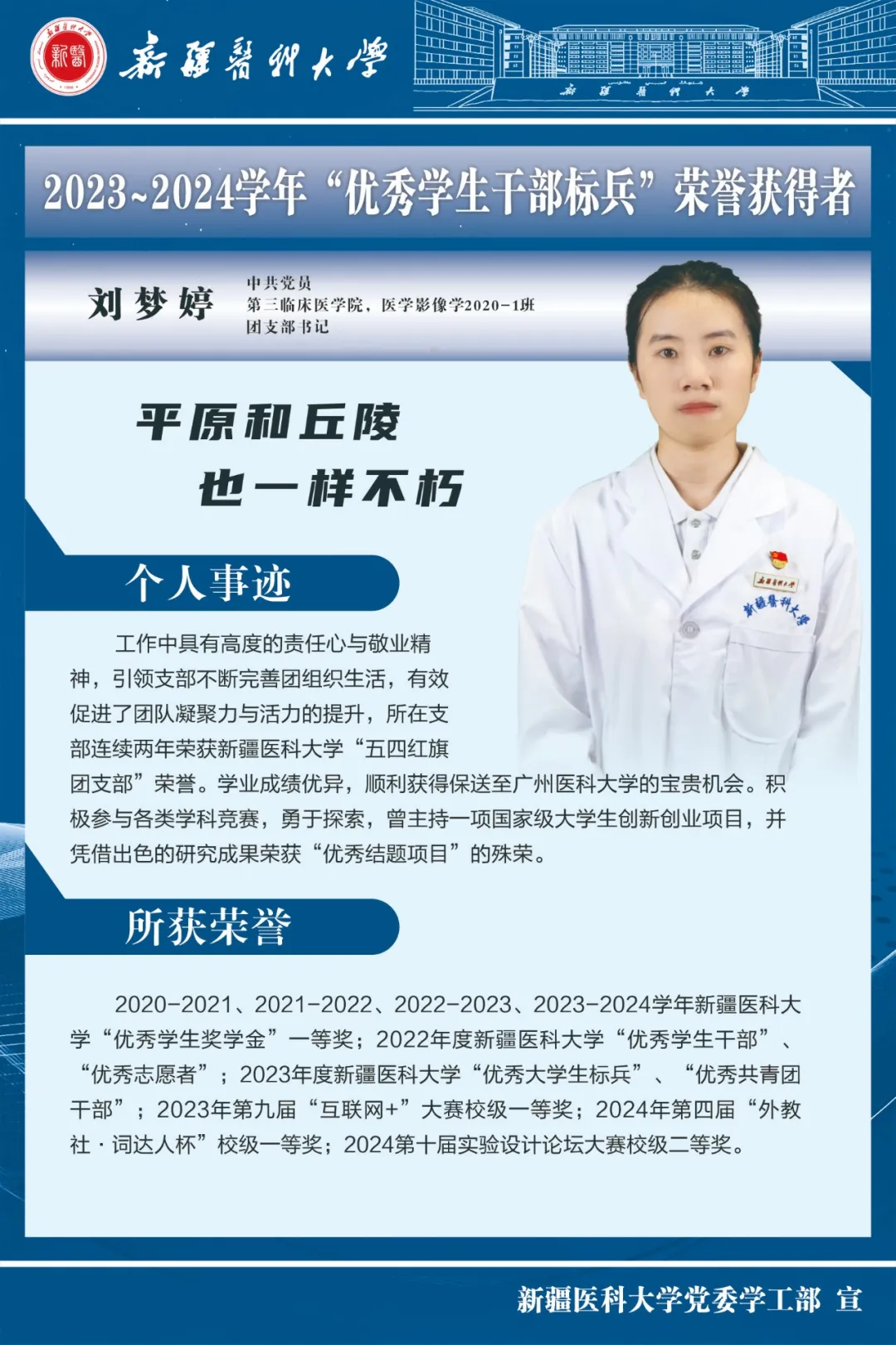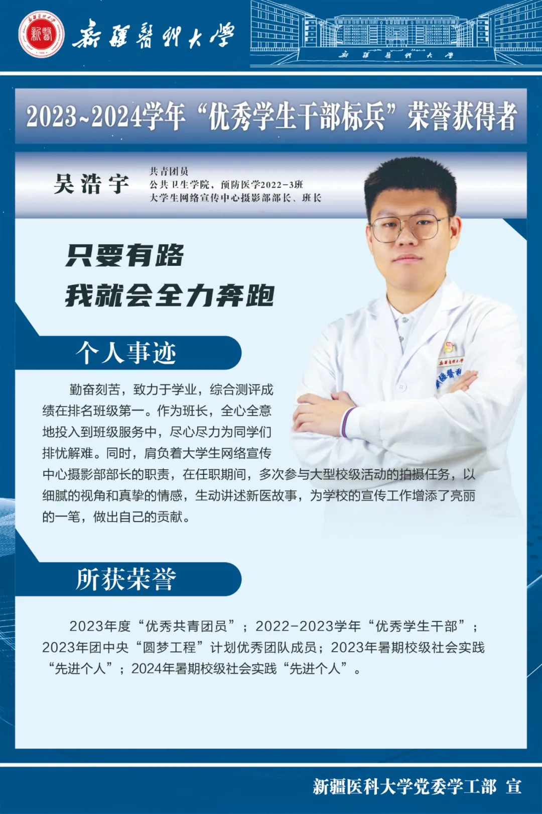 学校授予他(她)们“优秀学生干部标兵”荣誉称号