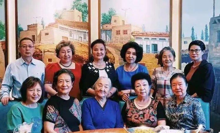 2023年,护校十四期毕业四十周年师生庆祝合影(第一排中间:哈丽曼·阿不都克力木)