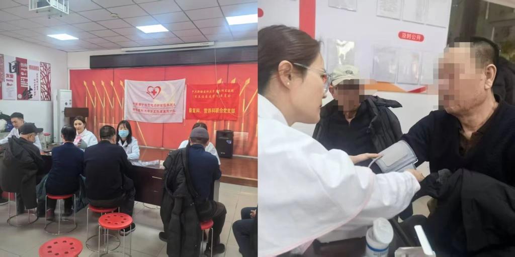 第五附属医院(第五临床医学院)老年病科医护人员来到乌鲁木齐市高新区锦江社区,开展以“关爱老人健康 · 守护幸福晚年”主题志愿服务活动。医护人员耐心地为每一位前来咨询的居民测量血压、血糖,根据检查结果提供科学的健康指导。同时,还普及了老年常见疾病的预防和治疗知识,帮助群众更好地做好健康管理。