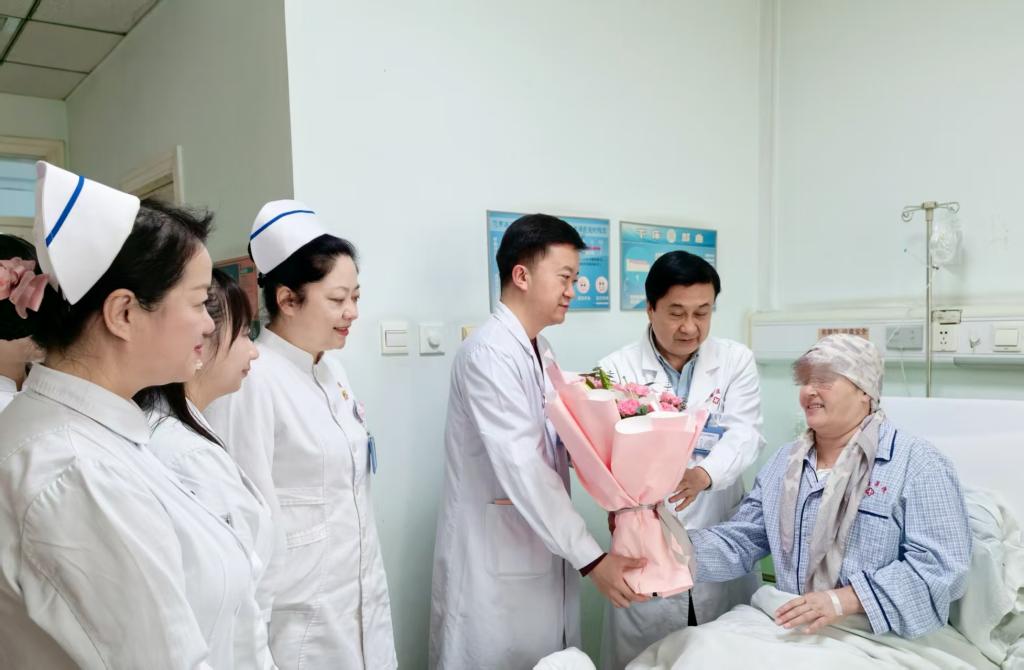治疗期间,大家还为萨女士送上鲜花,这份贴心的关怀让萨女士深受感动,她激动地说,“在这里,我重燃了生命的希望!这里的医生不仅技术精湛,他们无微不至的服务更让我感受到家人般的体贴和照顾!感谢中国好医生,感谢新疆医科大学的医疗团队!”