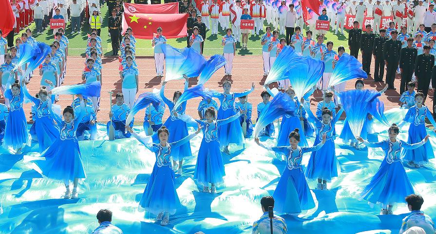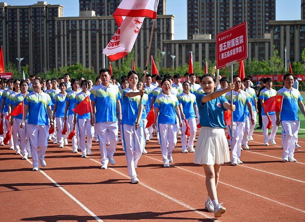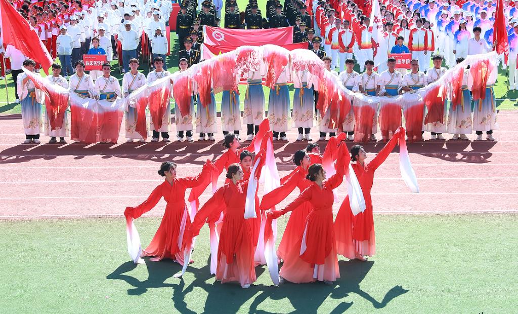 开幕式的团体操表演分“医脉传承”“筑梦青春”“奋进新医”三个篇章