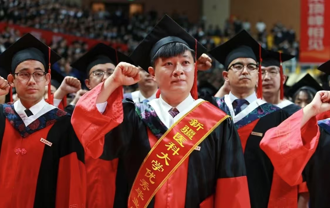 天山脚下谱华章,万水千山启新程。6月12日上午,新疆医科大学2025年毕业典礼暨学位授予仪式在雪莲山校区体育馆隆重举行,6381名新医毕业生迎来属于他们的荣耀时刻。他们将带着“健康所系、性命相托”的医学誓言,奔赴守护各族人民健康的新征程。