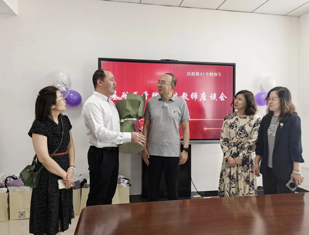 秋兰飘香,温情润心。在第41个教师节到来之际,新疆医科大学党委高度重视、精心安排,由校领导班子成员分别带队,深入教研室、科研实验室、临床病区等教学一线,看望慰问教师代表,向他们致以节日的祝福和诚挚的问候,把学校的关怀与温暖送到老师们心坎上。