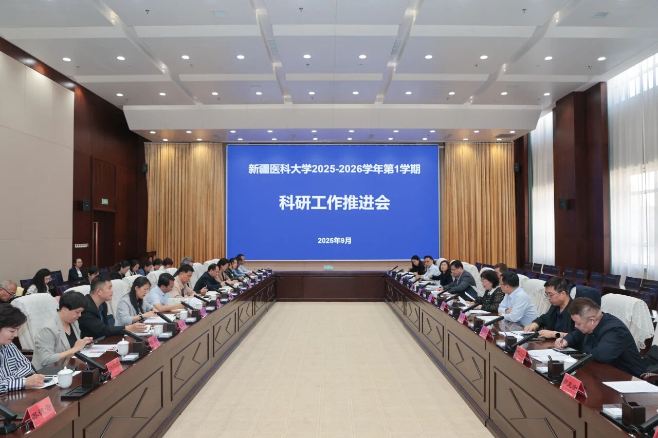 9月18日,新疆医科大学召开2025—2026学年第一学期科研工作推进会。会议紧扣中央和自治区关于科技创新工作的部署要求,系统总结了目前学校科研工作取得的成绩与经验,客观分析面临的形势与挑战,为凝聚全校科研力量,推动学校科技创新工作高质量、高效率、可持续发展谋篇布局。 校党委副书记、校长阿吉艾克拜尔·艾萨出席会议并讲话,校党委常委、副校长,新疆国际医疗中心(新疆国际医院)党委书记杨新玲主持会议。