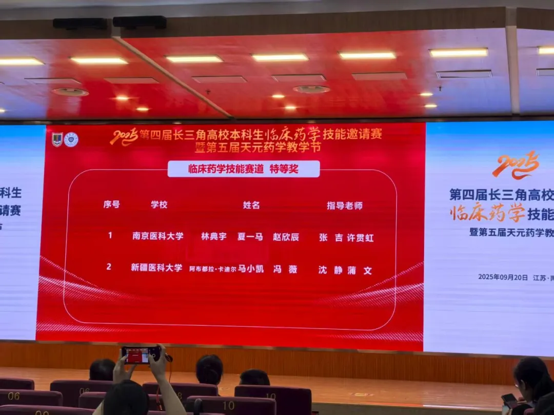 近日,由南京医科大学承办、中国药科大学协办的第四届长三角高校本科生临床药学技能邀请赛在南京举行。新疆医科大学参赛团队发挥出色,获得特等奖1项,一等奖1项的好成绩。
