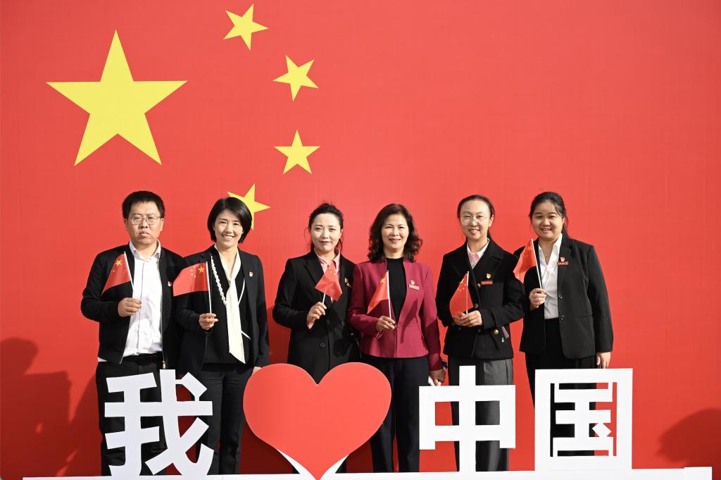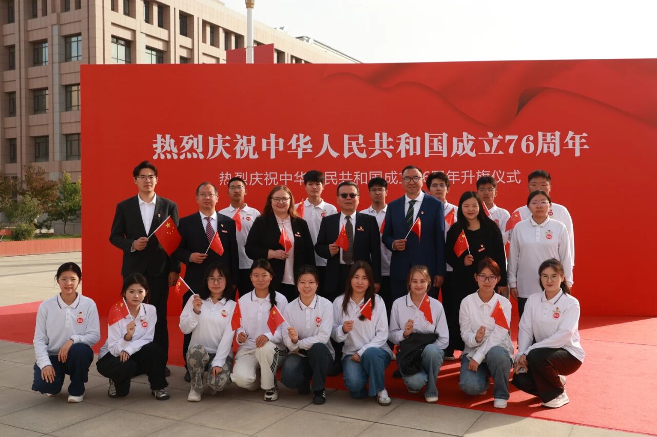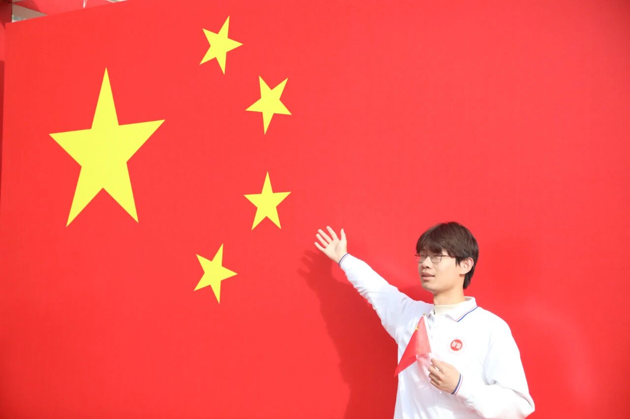 “五星红旗迎风飘扬,胜利歌声多么响亮……” 仪式最后,全场师生挥动着手中的国旗,齐声高唱《歌唱祖国》。这歌声,是祝福,是誓言,是凝心聚力的号角,更是奔赴未来的序曲。歌声汇聚成一片赤诚热烈的海洋,涌动着对祖国繁荣昌盛、国泰民安的最美好祝愿。