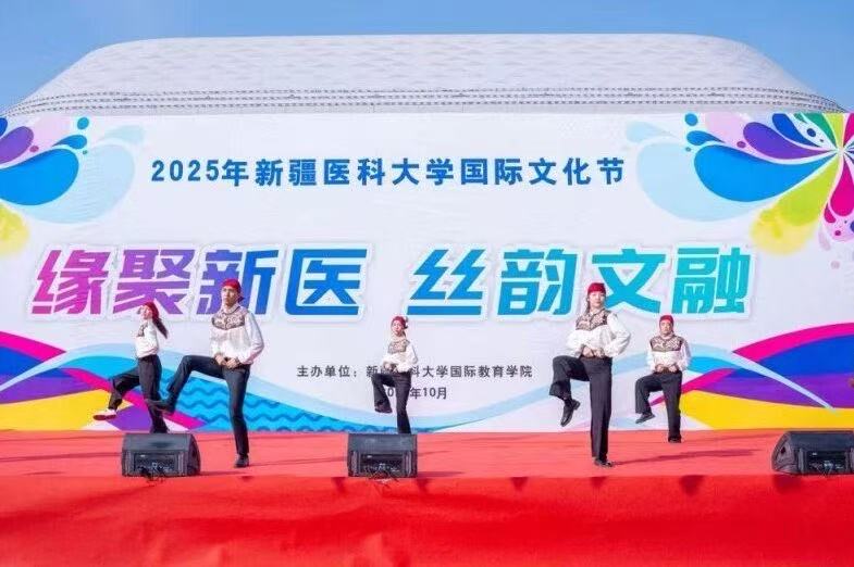 为进一步加强我校中外医学生的文化交流与文明互鉴,促进国际学生感知中国、读懂中国,10月26日,新疆医科大学第五届“缘聚新医·丝韵文融”国际文化节在雪莲山校区举行,来自“一带一路”友好国家的留学生齐聚一堂,沉浸式体验多元文化的魅力,共筑友谊的桥梁。