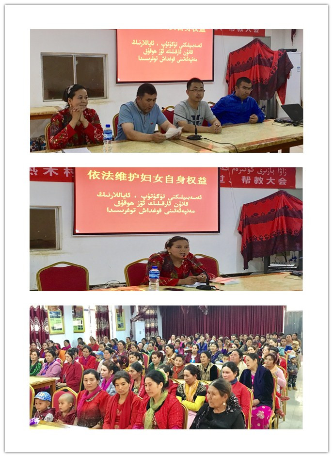 5月31日,库提热木村便民服务中心人头攒动,村里的三百多名妇女齐聚一堂。原来,村妇女主任布合迪切•依明在新疆妇女干部学校学习培训了半个多月,刚从乌鲁木齐市归来,在新疆医科大学驻墨玉县库提热木村工作队的指导下,她正在做题为“依法维护妇女权益”的讲座。