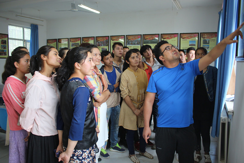 7月19日晚,青岛大学美术学院大学生们来到新疆医科大学驻托格拉克麻扎村小学生中间进行绘画小课堂活动。本村30多小学生聆听了一堂高水平的绘画培训。