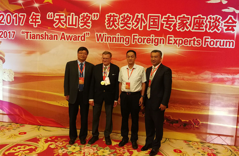 自治区政府外国专家“天山奖”是为表彰为新疆经济社会发展做出贡献的外国专家的最高荣誉,每年评审一次,并由自治区人民政府颁发奖章及证书,今年共有八位专家获奖。此次鲁尼•安德森教授获此殊荣,是对他多年来在人才培养和交流合作方面所做工作的肯定。