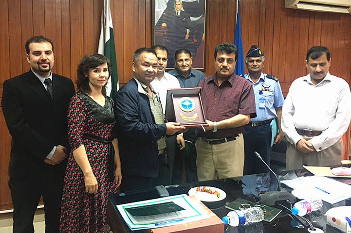 我校代表团应邀与巴基斯坦航空大学(AIR UNIVERSITY)开展交流合作。航空大学校长法兹教授(FAAIZ AMIR)对我校代表团的来访表示热烈欢迎。他说,中巴友谊源远流长,两国间不但建立了全天候的战略合作伙伴关系,同时也是一带一路愿景实施的重要合作伙伴。我校代表对航空大学的邀请表示感谢,介绍了我校校史、专业特色、学科设置等方面的基本状况。双方就汉语中心、中医文化交流中心的建设构想进行深入探讨。