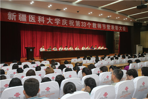 金色九月,秋风送爽,9月8日下午,我校隆重举行新疆医科大学庆祝第33个教师节暨表彰大会,全体校领导,处以上领导干部,受表彰人员,教师及学生代表800余人参加大会。大会由校党委常委、副校长贾文霄同志主持。