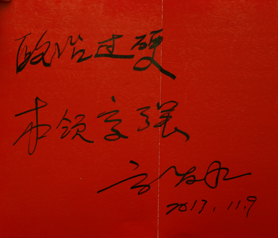 访谈尾声,高发水书记饱含深情地朗诵了毛泽东的《沁园春•长沙》送给同学们,并题词勉励同学们:政治过硬、本领高强。
