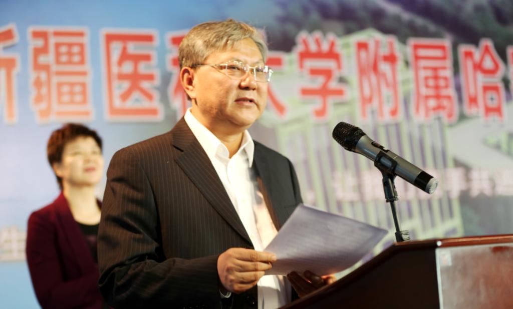 新疆医科大学党委书记高发水和哈密市委书记卢蜀江共同为新疆医科大学附属哈密市中心医院、新疆医科大学哈密市中心医院临床医学院揭牌。