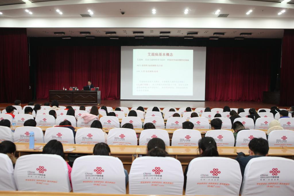 为普及艾滋病防治知识,增强大学生自我保护意识,11月29日晚八点,自治区防治艾滋病工作委员会办公室主任、新疆艾滋病性病防治协会会长、自治区十一届政协委员、新疆医科大学硕士研究生导师地力夏提•亚克甫教授为我校师生作了题为“携手防艾,重在预防”的预防艾滋病知识讲座。新疆医科大学副校长热娜·卡斯木,职能部门、相关学院工作人员及学生聆听了讲座。校团委书记马翠主持讲座。