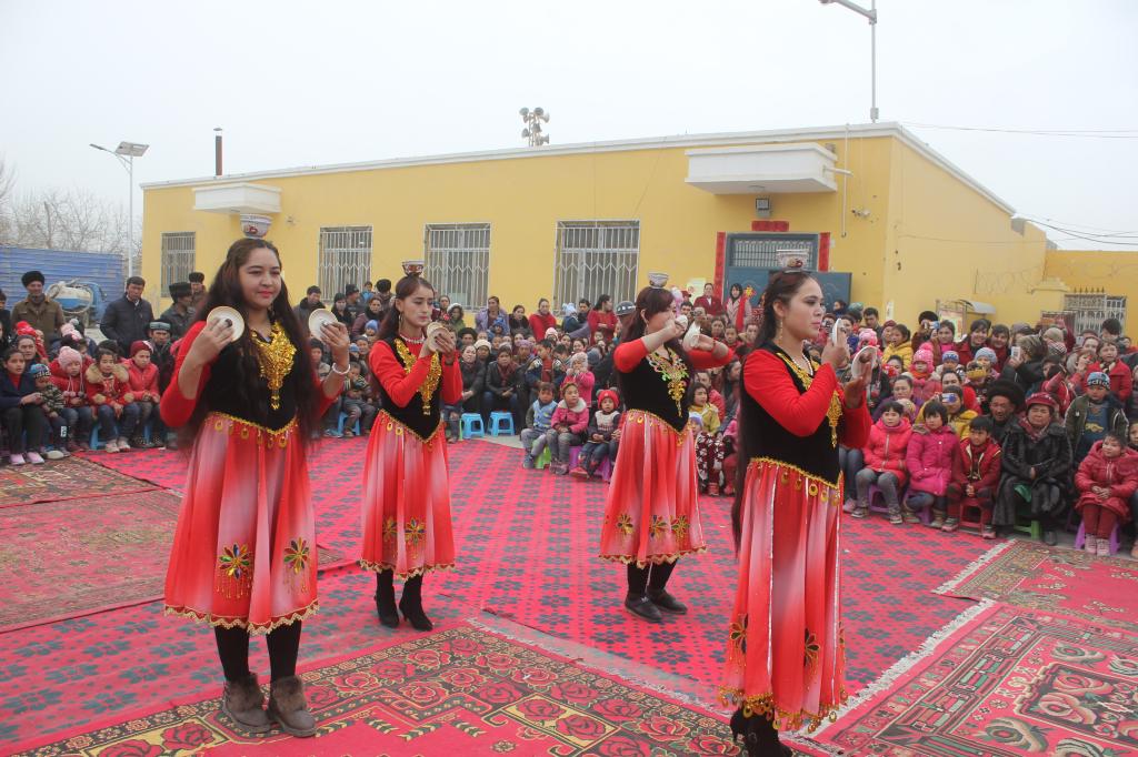 文艺活动内容异彩纷呈,贴近生活,极具中华文化和新疆地方特色。既有极具维吾尔族民族特色的顶碗舞、麦西来普、都塔尔弹唱,也有极具爱国情怀的的独唱《我是中国人》、合唱《没有共产党就没有新中国》,大学生的街舞表演、拔河比赛、踢毽子比赛、斗鸡比赛也穿插其中,全村30名党员、预备党员狗年第一天的发声亮剑活动更是把此次活动推向了高潮。