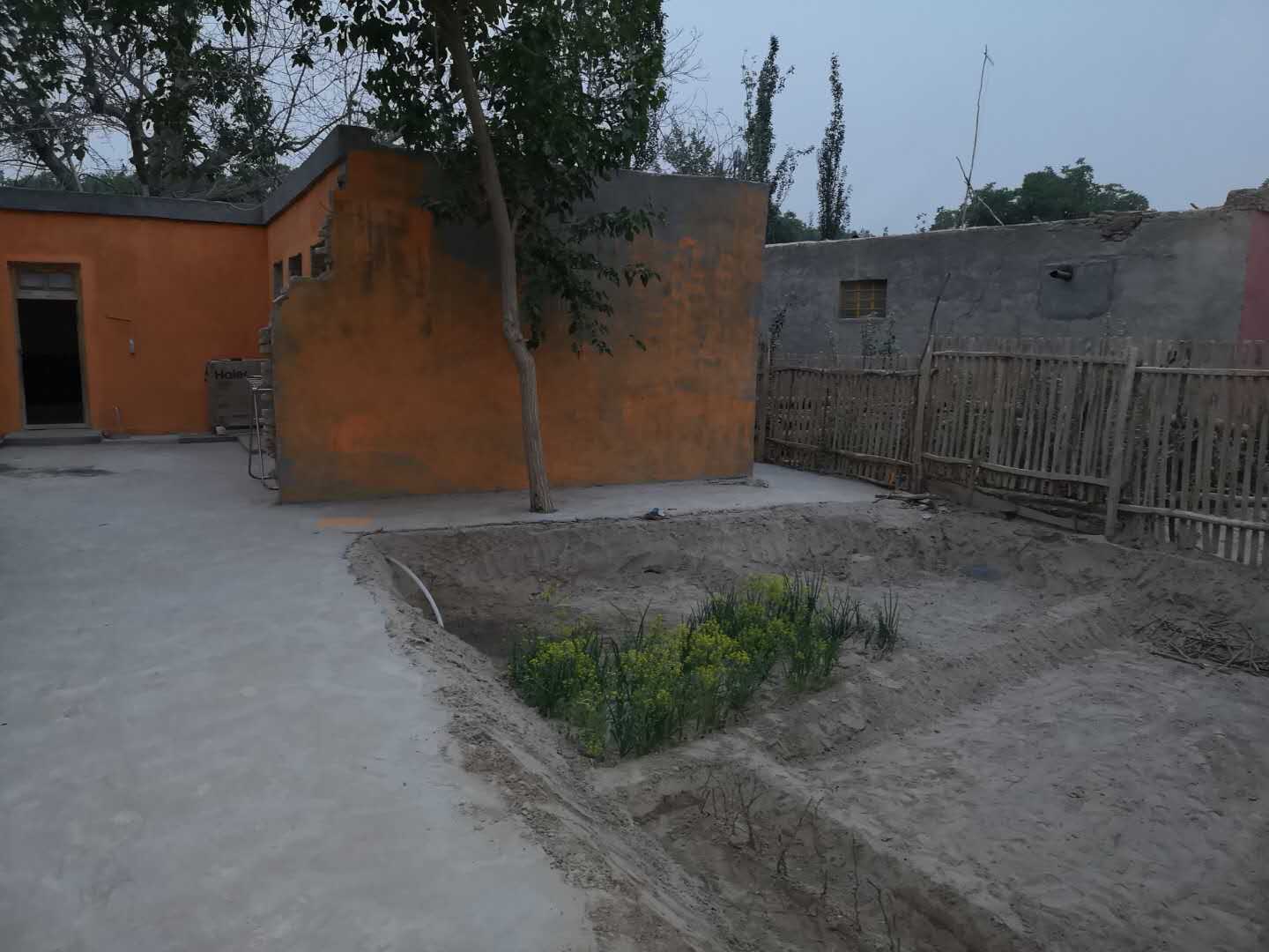 离阿米妮古丽·阿卜杜拉家不远,是结亲干部,宣传部张莉的亲戚艾力·麦合苏提的家。当我们再一次走进艾力家的小院时,被眼前看到的一切惊呆了。如果说不是在门口再三确认了门牌号,我们一定不敢相信,这还是原来那个尘土飞扬、满地杂物、破败不堪的院子吗?整洁的水泥地平直通到院门口,左边的开阔地被主人整理出来种上了各式蔬菜。韭菜,皮芽子抽出的嫩芽和新压的葡萄枝让小院里显得生机勃勃,另一边是新搭建起来的干净的牲畜棚圈,三只小羊在围栏里悠闲得吃草,后屋的卫生间也被重新改造了,一切都显示着这家主人对生活的无比热爱。